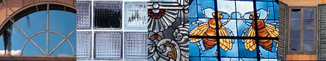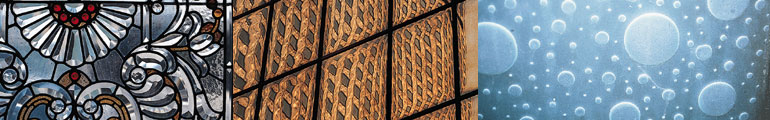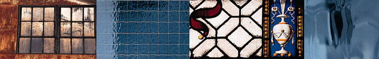 | In Manufactured Glass," close-up views depict types of architectural window glass. Other sections show architectural applications, and are identified as to type, manufacturing process, and proprietary or industry name. Pictures show a variety of periods, styles and weathered conditions. Terms and finishing techniques used in the captions are explained in the glossary. To view all the pictures in this chapter visit www.planetprepro.com. | ||||||||||