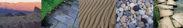 | Pictures in this chapter show a variety of types and textures of stone and sand in natural settings, and as they are used in gardens, parks, walls, steps, paths, and walkways. Longer views of landmasses and rock formations provide research for landscape painters, sculptors, and designers. To view all the images in this chapter visit www.planetprepro.com. | |||||||||