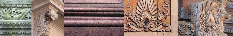 Images show examples of molding and ornament attached to architecture. Included are photographs of decorative patterns and combinations of molding, with detailed views showing how elements are resolved at joinings and around corners. Images represent a variety of periods and styles with some showing how materials weather and age. Terms and finishing techniques used in the captions are explained in the glossary. |