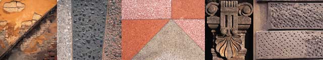| These building and decorative materials are products of dry materials which, when mixed with liquid, set to form a hard surface. Besides plaster and stucco, these include asphalt, concrete, agglomerates, and terrazzo. Subjects are identified by material, and where appropriate, by bond, application, and surface finish. Pictures give a variety of periods, styles and weathered conditions. Terms and finishing techniques used in the captions are explained in the glossary. To view all the pictures in this chapter visit www.planetprepro.com. |