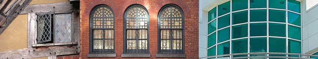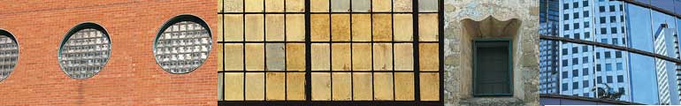 Photographs show styles and types of windows, frames, and surrounds. Pictures include detailed views of the elements that make up window installations. Images represent a variety of periods and styles with some showing how materials weather and age. Terms and finishing techniques used in the captions are explained in the glossary. |
